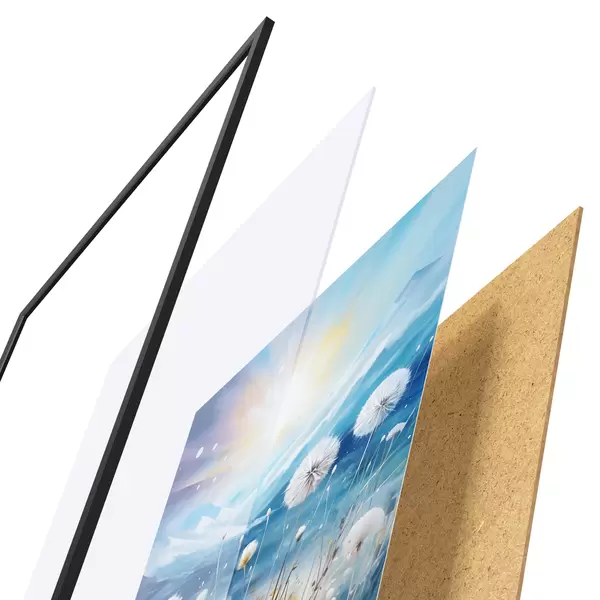 Plakat koosneb raamist, pleksiklaasist, trükitud pildist ja puitlaastplaadist alusplaadist. Tänu tagaküljel olevatele kinnitustele saab plakati kohe seinale riputada.