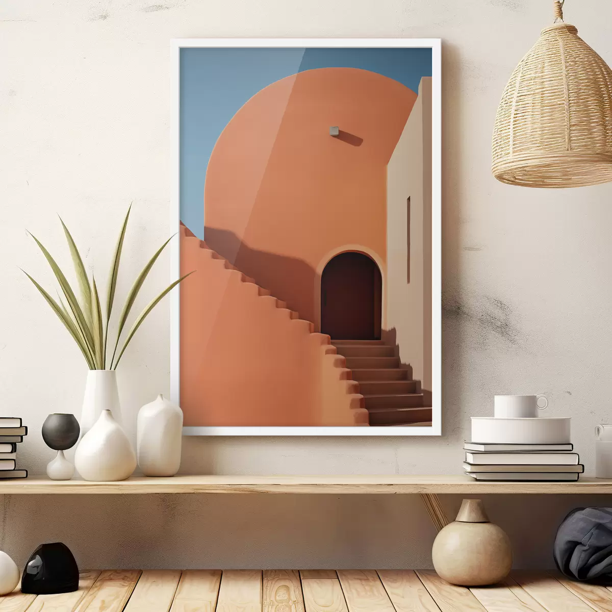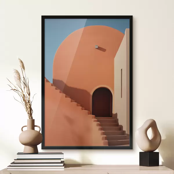 Poster Minimalistlik arhitektuurne hoone astmetega, sinine, oranž värvus Nr f40724