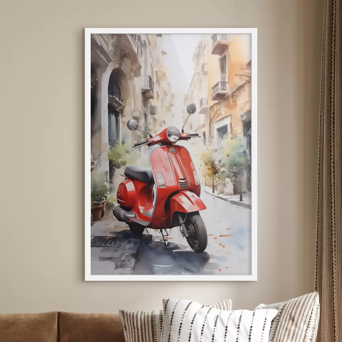 Poster Punane mootorratas Rooma tänaval akvarellina Nr f40728