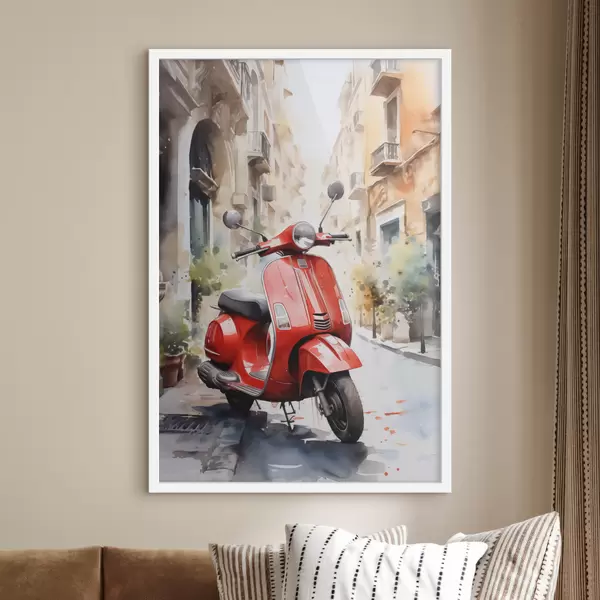 Plakat Punane mootorratas Rooma tänaval akvarellina f40728