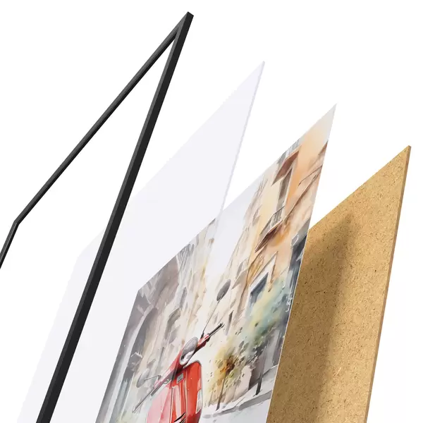 Plakat koosneb raamist, pleksiklaasist, trükitud pildist ja puitlaastplaadist alusplaadist. Tänu tagaküljel olevatele kinnitustele saab plakati kohe seinale riputada.