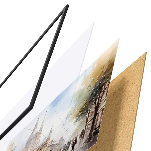 Plakat koosneb raamist, pleksiklaasist, trükitud pildist ja puitlaastplaadist alusplaadist. Tänu tagaküljel olevatele kinnitustele saab plakati kohe seinale riputada.