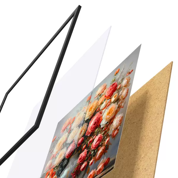Plakat koosneb raamist, pleksiklaasist, trükitud pildist ja puitlaastplaadist alusplaadist. Tänu tagaküljel olevatele kinnitustele saab plakati kohe seinale riputada.