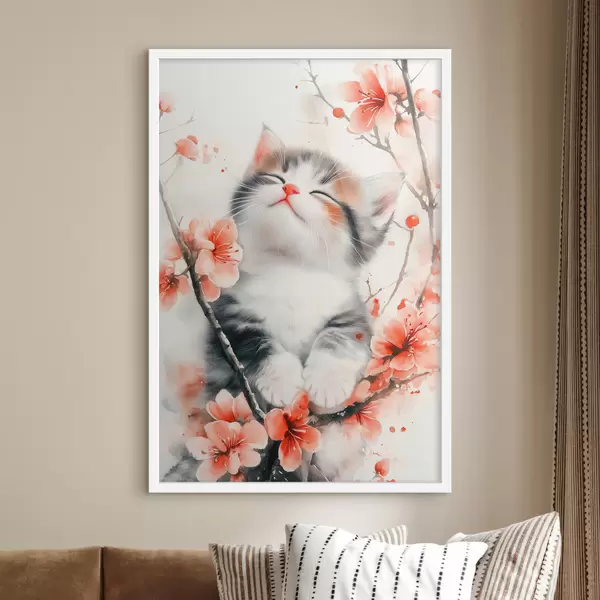 Poster Armas kassipoeg lilledega oksal Nr f40734