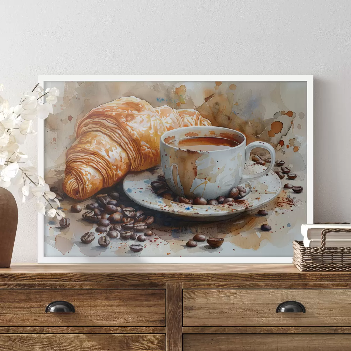 Poster Croissant, hommik, croissant ja tass kohvi, akvarell Nr f40782
