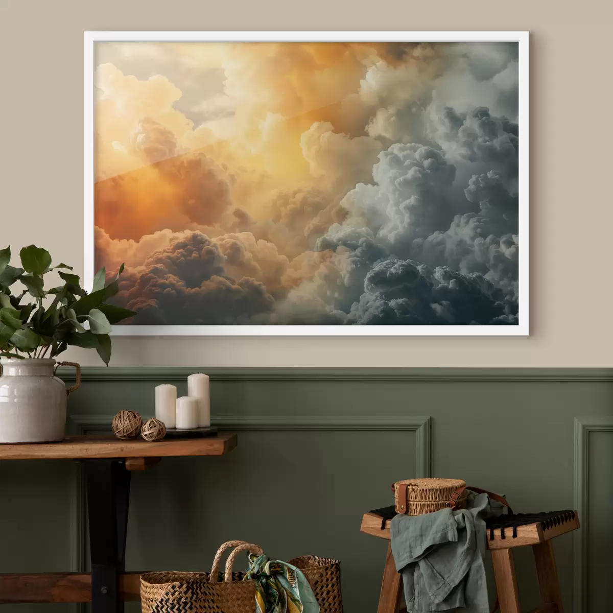 Poster Pilved, tumesinine, oranž, antiikne Nr f40785