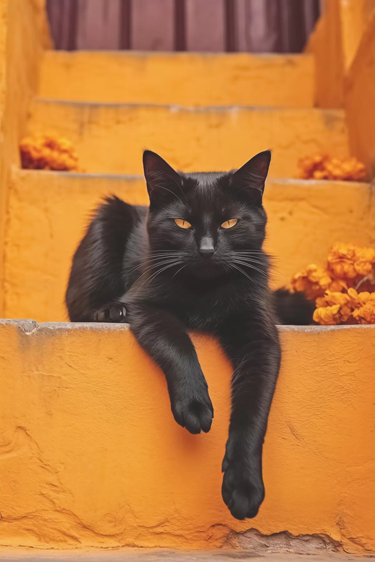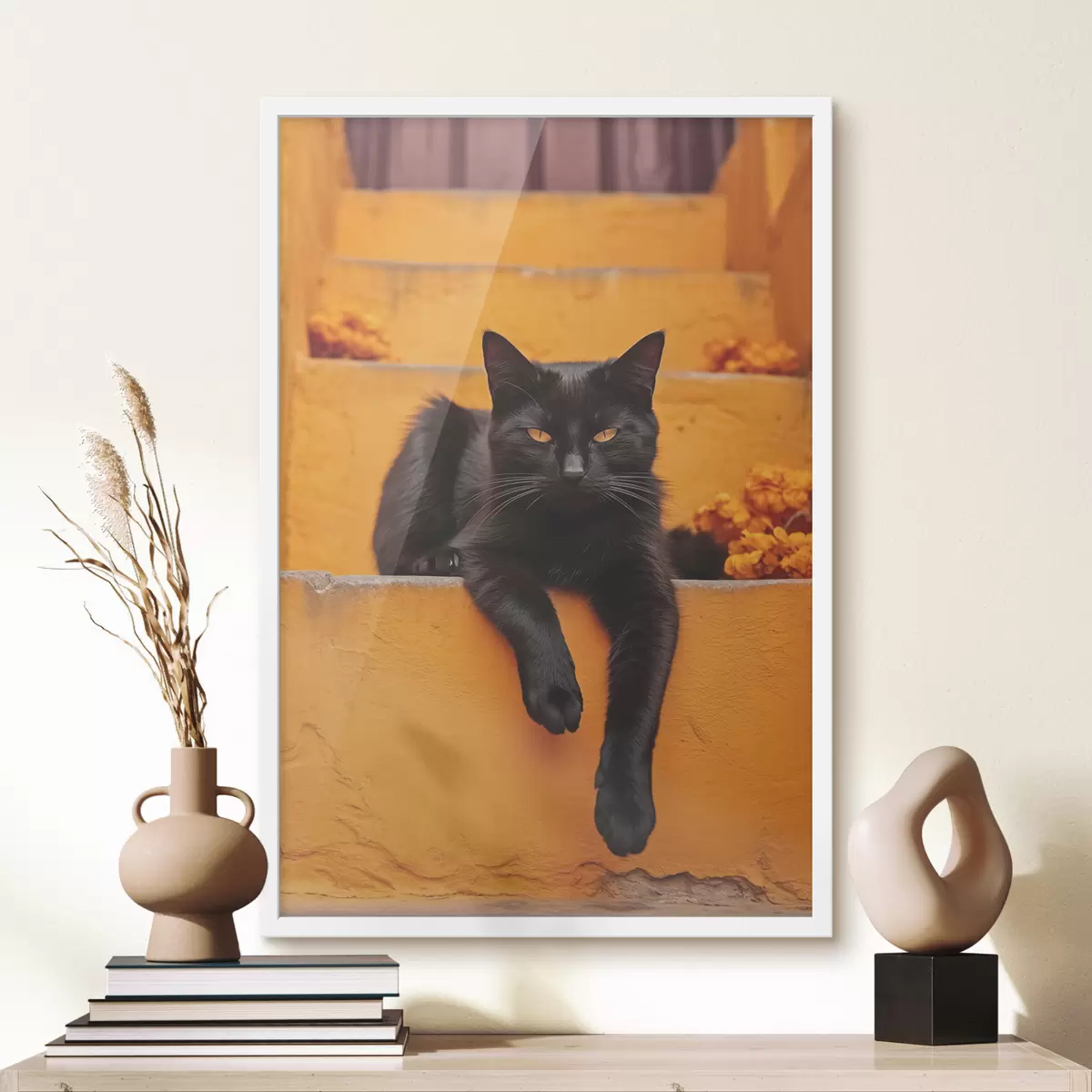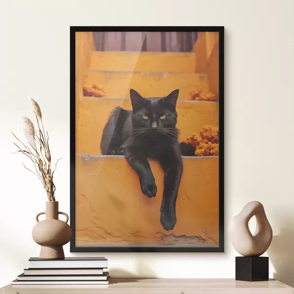 Poster Must kass lamab kollastel treppidel Nr f40798