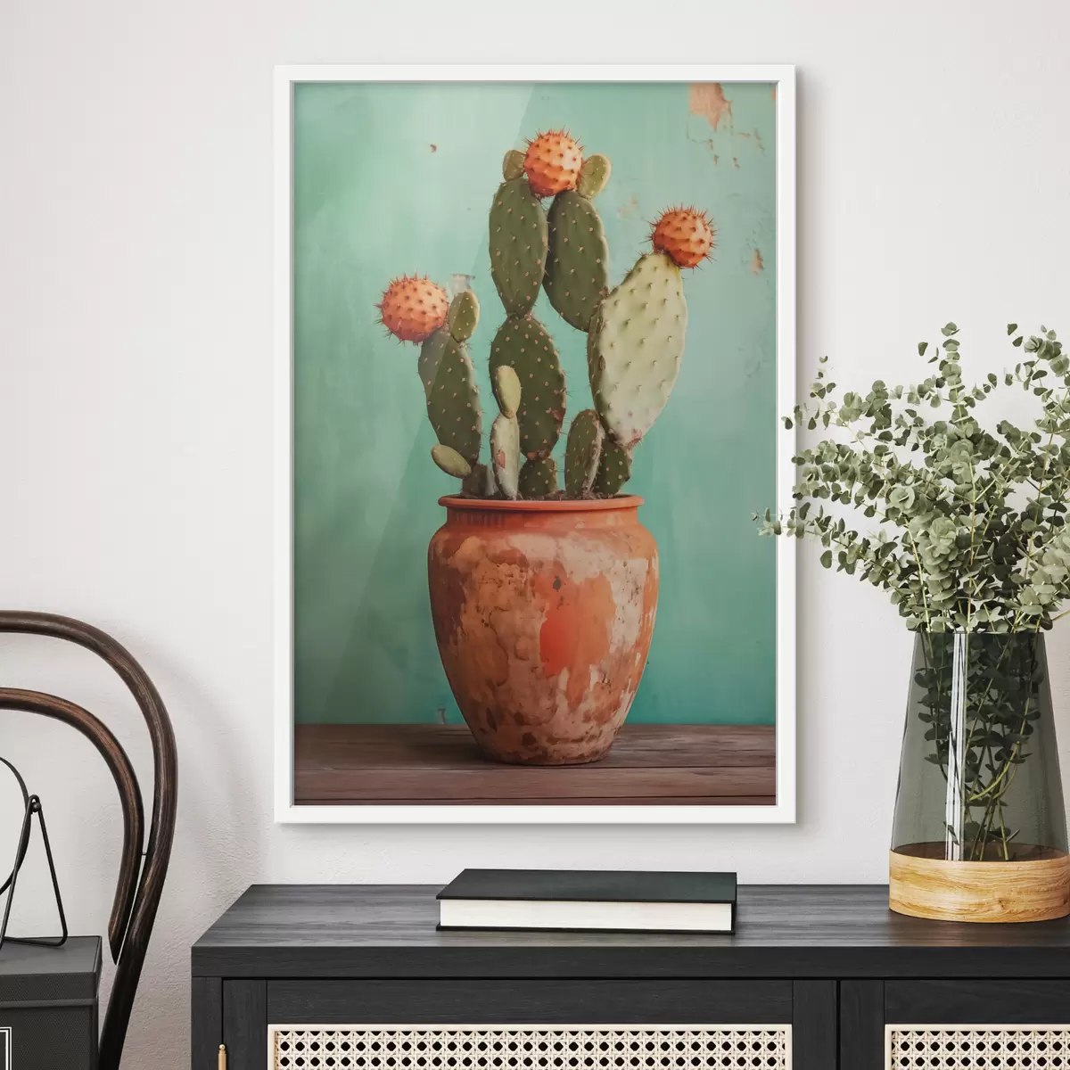 Poster Kaktus vanas savipotis sinirohelise seina taustal Nr f40807