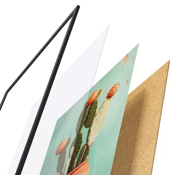 Plakat koosneb raamist, pleksiklaasist, trükitud pildist ja puitlaastplaadist alusplaadist. Tänu tagaküljel olevatele kinnitustele saab plakati kohe seinale riputada.