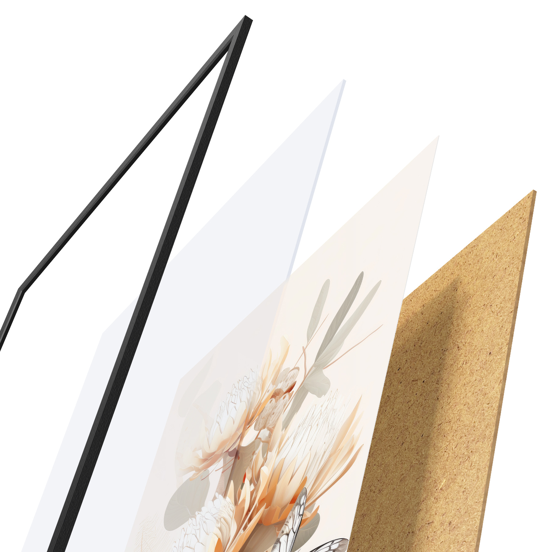 Plakat Ilusad protea lilled koos liblikaga, pehmed beežid värvid, puuvillased f40816