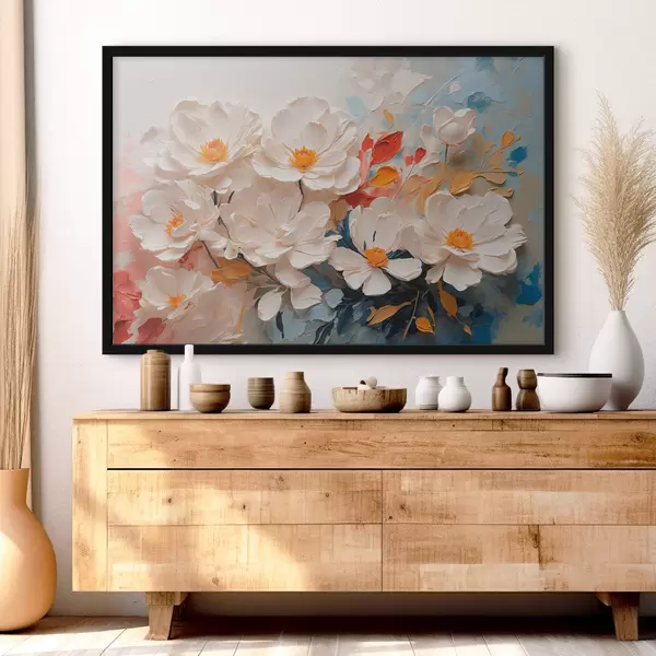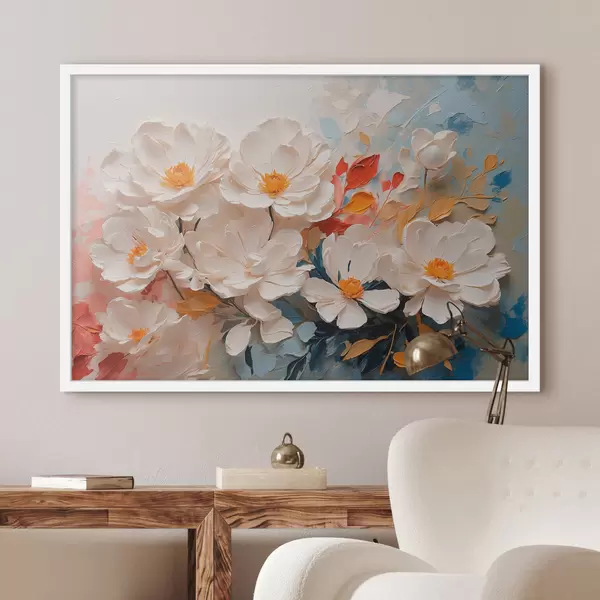 Plakat Abstraktne valge lillede õli f40862