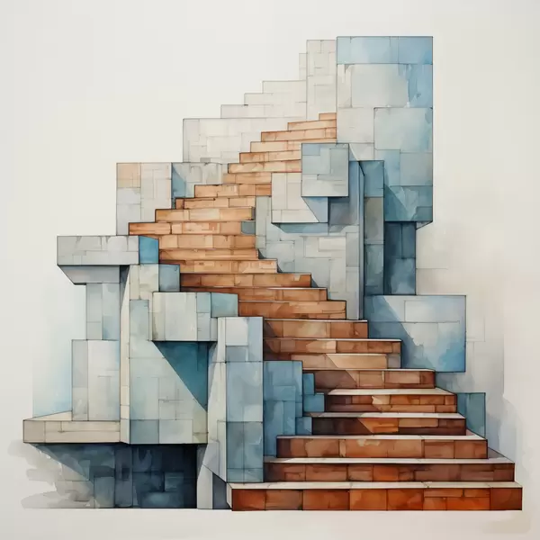 Plakat Kivitrepp abstraktne arhitektuuriline maastik akvarell f40891