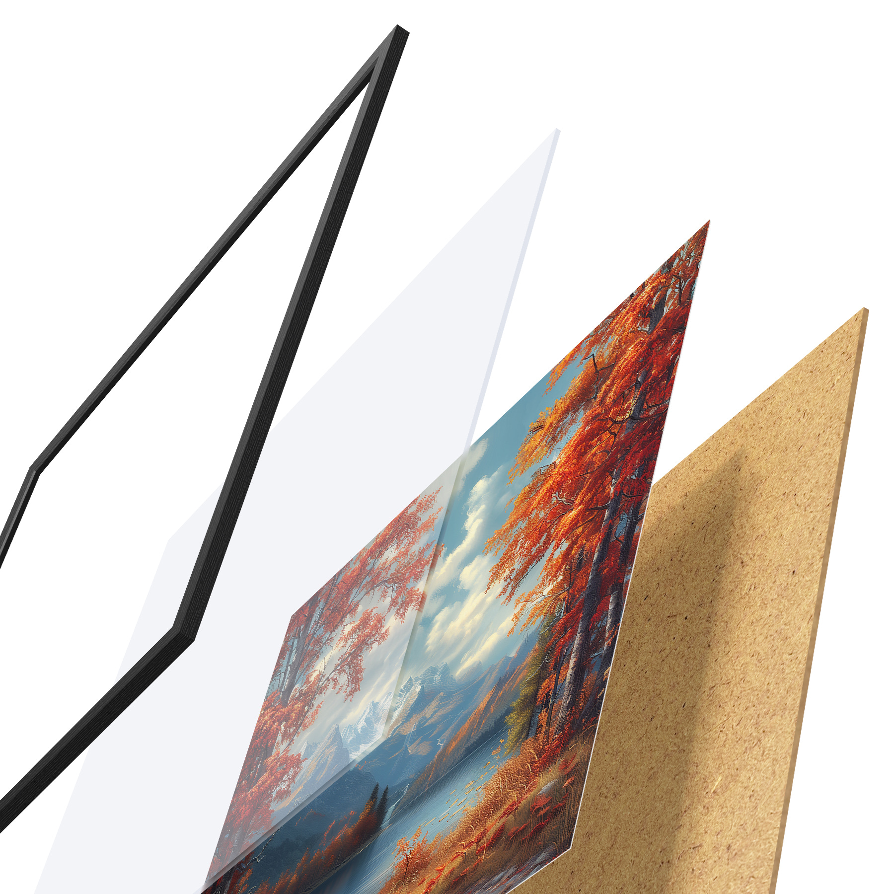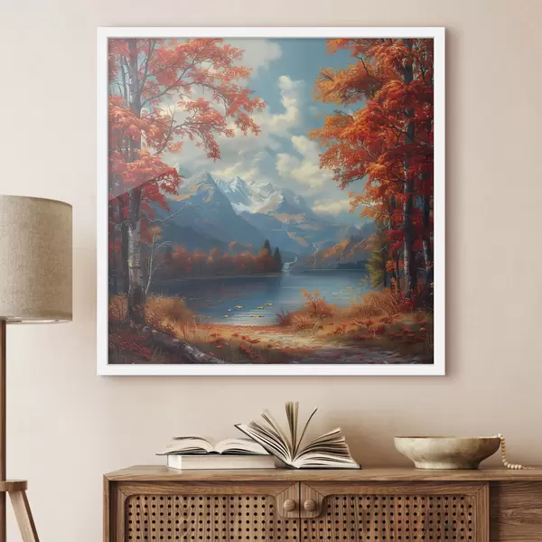 Plakat Sügisene maastik mägede taustal tiigi ääres f40903