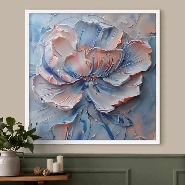 Plakat Suur lill julgete pintslitõmmetega sinistes ja virsikuvärvides f41004