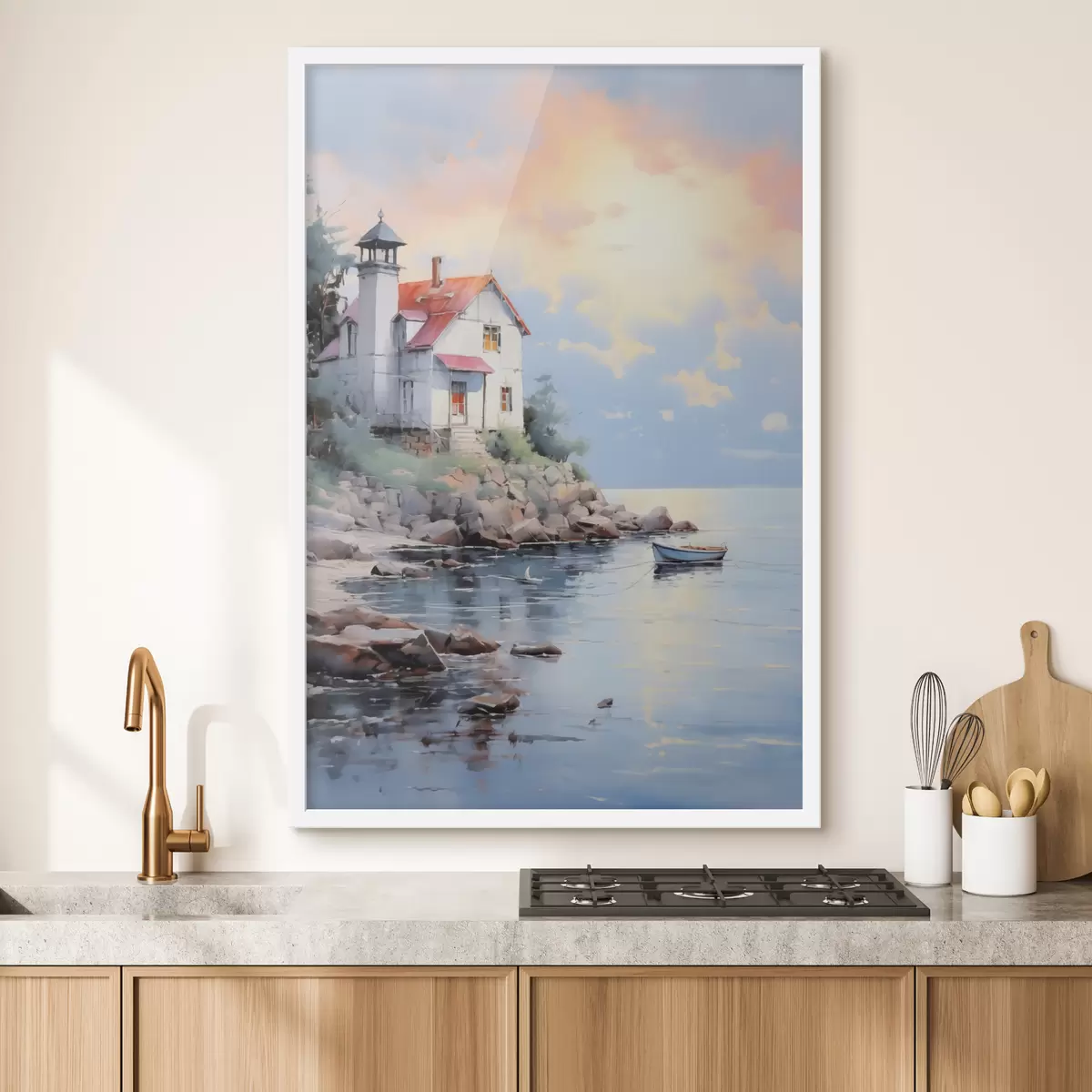 Poster Maja rannas mere ääres päikeseloojangul Nr f41010