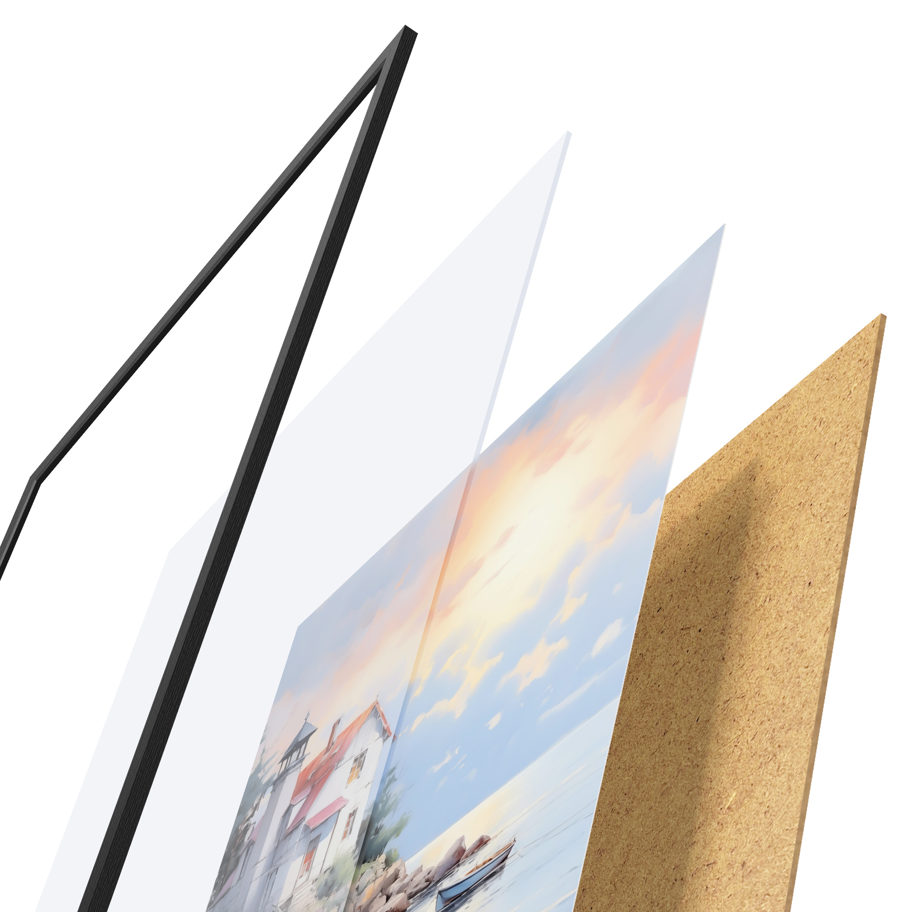 Plakat koosneb raamist, pleksiklaasist, trükitud pildist ja puitlaastplaadist alusplaadist. Tänu tagaküljel olevatele kinnitustele saab plakati kohe seinale riputada.