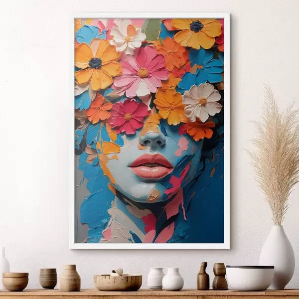 Poster Tüdruku nägu õliga kaetud lilledega Nr f41023
