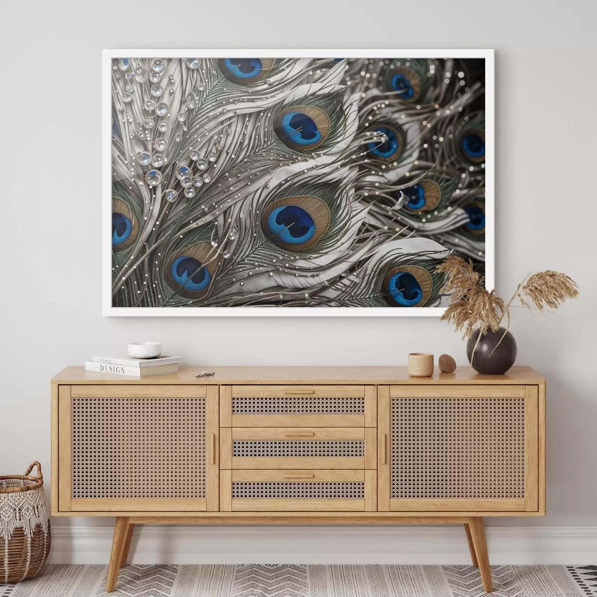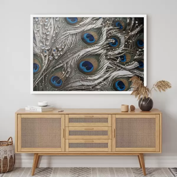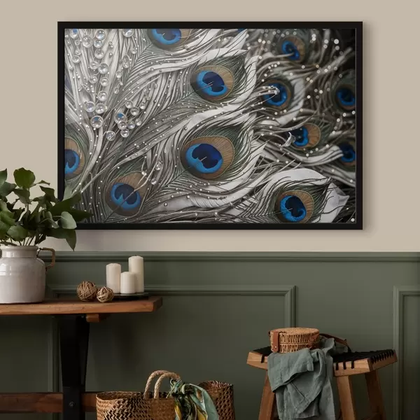 Poster Elavatest, keeruliste mustritega ja silmatorkavate siniste mustritega paabulinnusulgedest Nr f41103