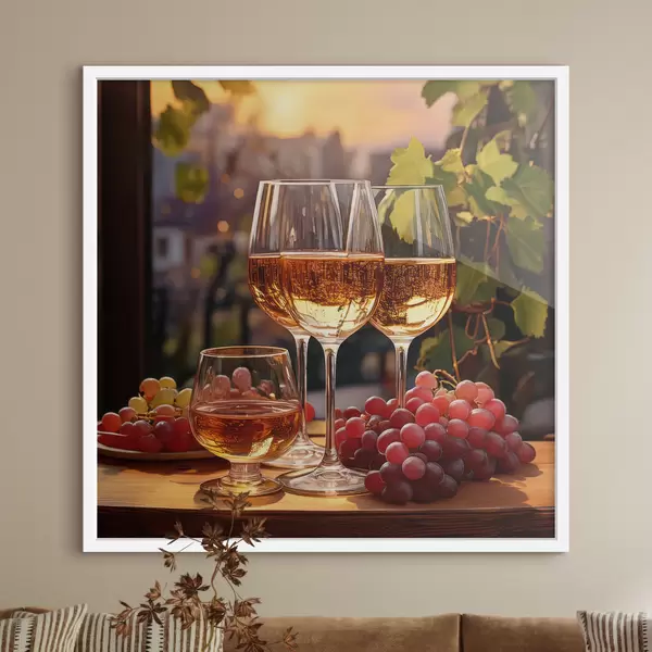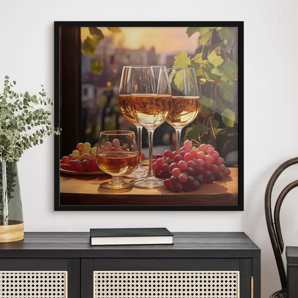 Poster klaasid veiniga, viinamarjad laual, vaatepilt Nr f41104