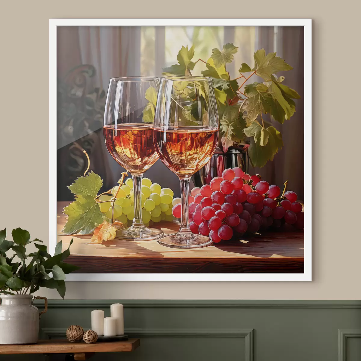 Plakat veiniklaasid ja viinamarjad, vaatepilt f41105