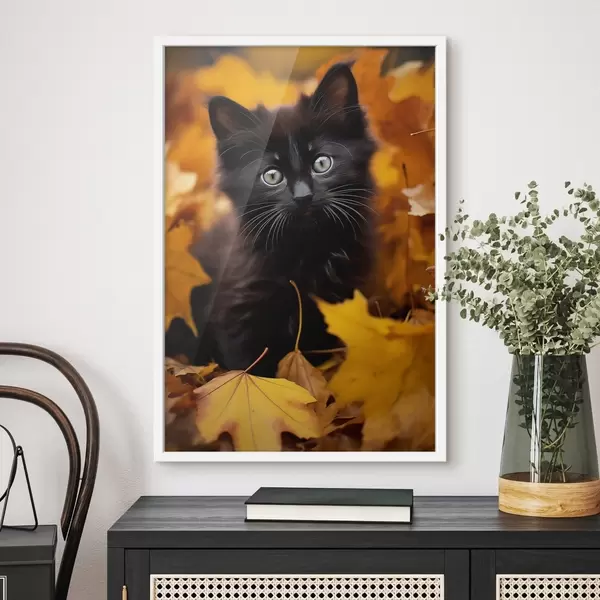 Poster Armas must kass sügiseses metsas Nr f41119