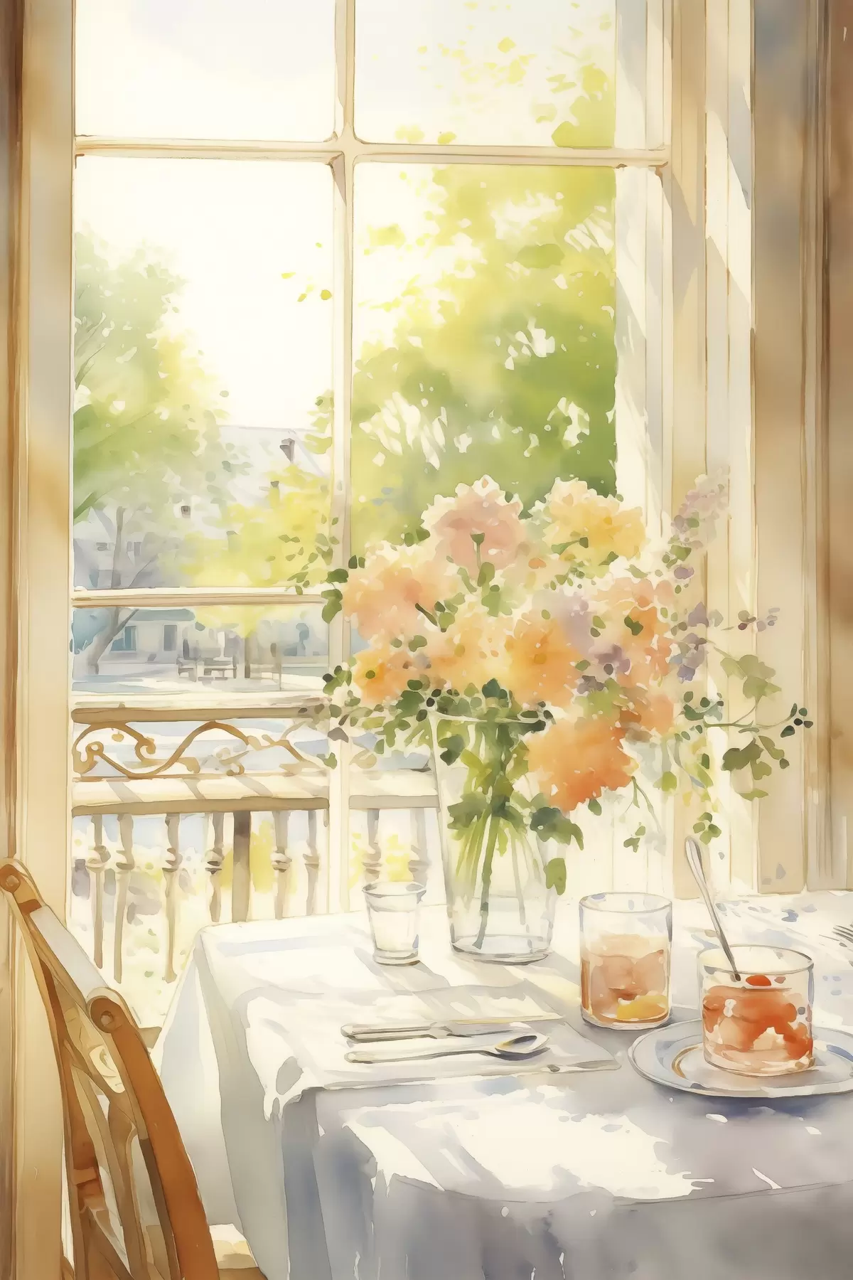 Poster Romantiline õhtusöök, akvarell, boho stiil, lilled, loodus Nr f41165