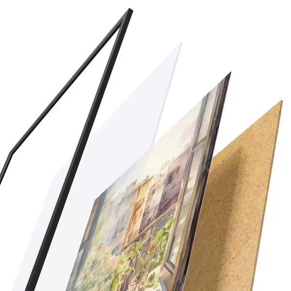 Plakat koosneb raamist, pleksiklaasist, trükitud pildist ja puitlaastplaadist alusplaadist. Tänu tagaküljel olevatele kinnitustele saab plakati kohe seinale riputada.