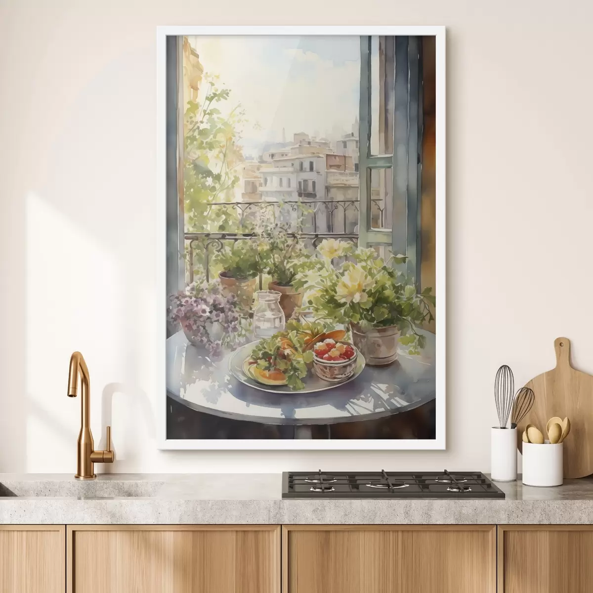 Poster Romantiline õhtusöök linnavaatega, akvarell, lilleline Nr f41168