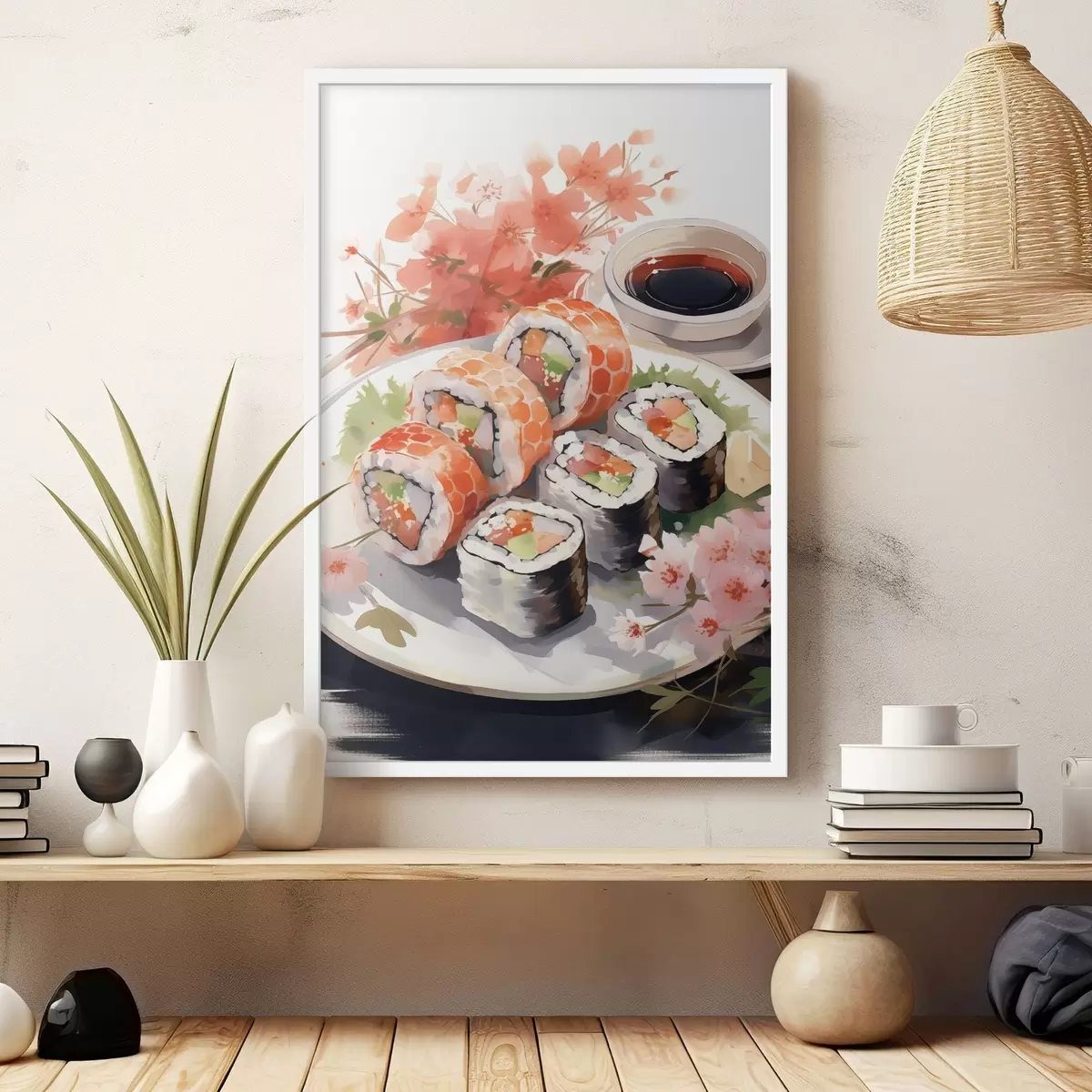 Poster Sushi taldrikul, akvarell, lilleline, jaapani Nr f41179