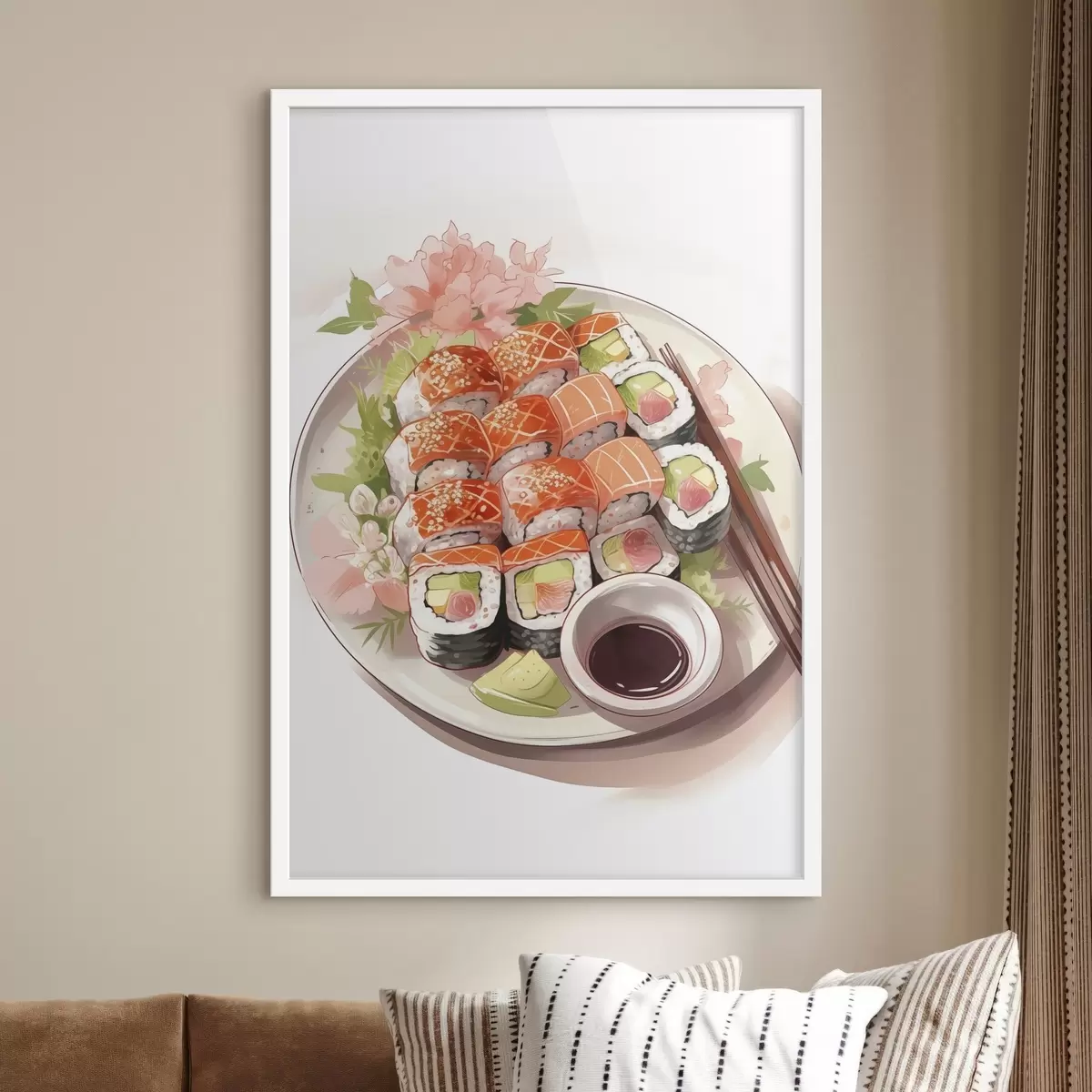 Poster Akvarell taldriku sushi, lõhe, maitsev Nr f41180
