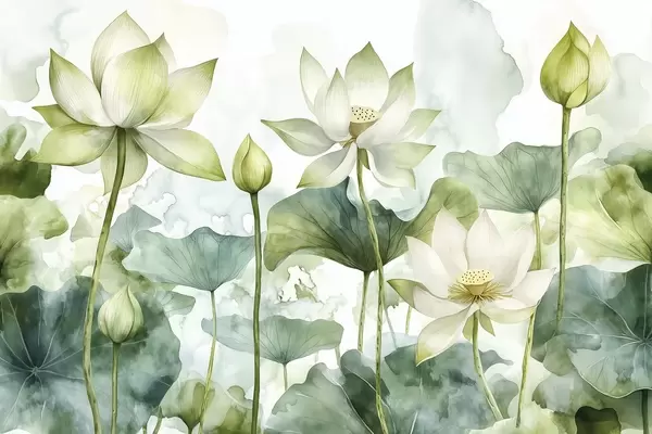 Poster Akvarell-lootoseid, lopsakas rohelus Nr f41226