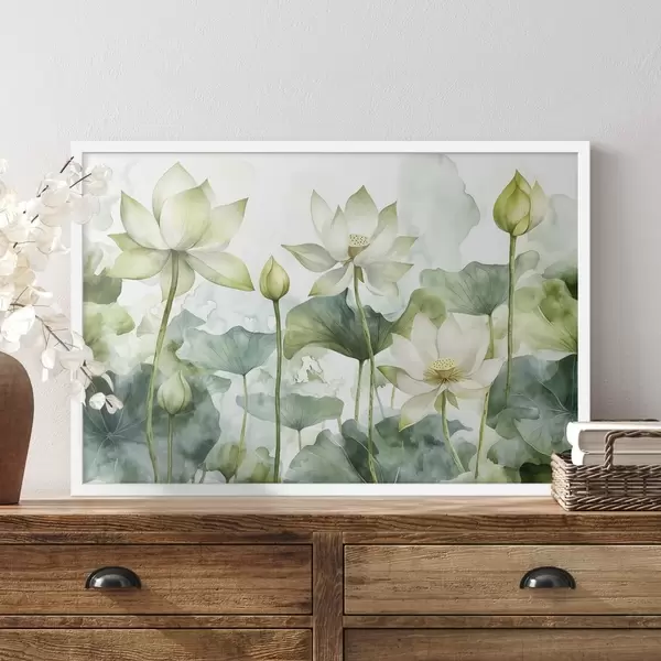 Plakat Akvarell-lootoseid, lopsakas rohelus f41226