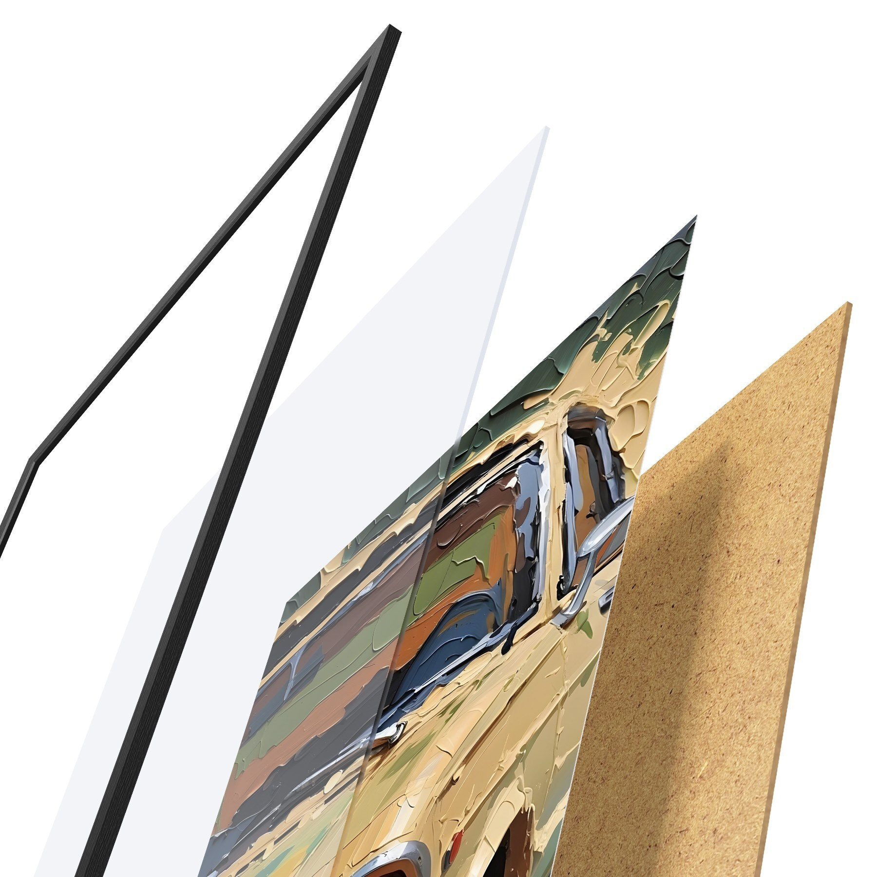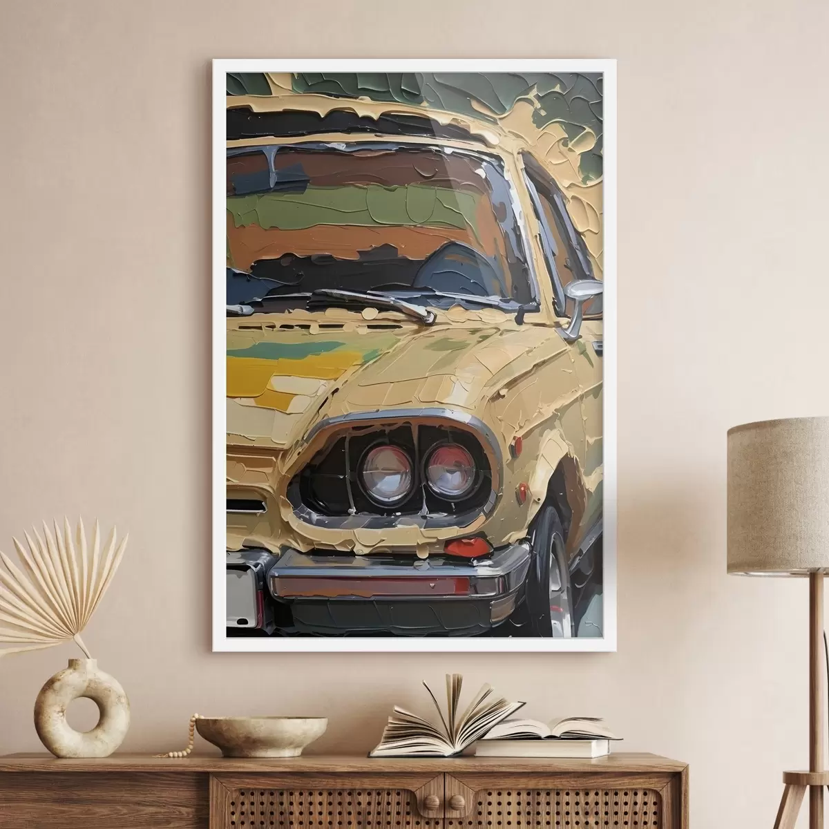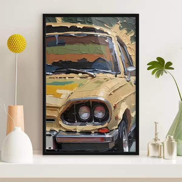 Plakat Imitatsioon impasto õlimaal kollane auto värviline, abstraktne taustal f41261