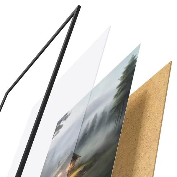 Plakat koosneb raamist, pleksiklaasist, trükitud pildist ja puitlaastplaadist alusplaadist. Tänu tagaküljel olevatele kinnitustele saab plakati kohe seinale riputada.