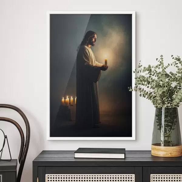Plakat Jeesus Kristus küünlaga pimeduses f41315