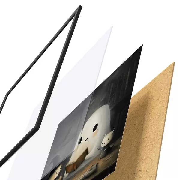 Plakat koosneb raamist, pleksiklaasist, trükitud pildist ja puitlaastplaadist alusplaadist. Tänu tagaküljel olevatele kinnitustele saab plakati kohe seinale riputada.