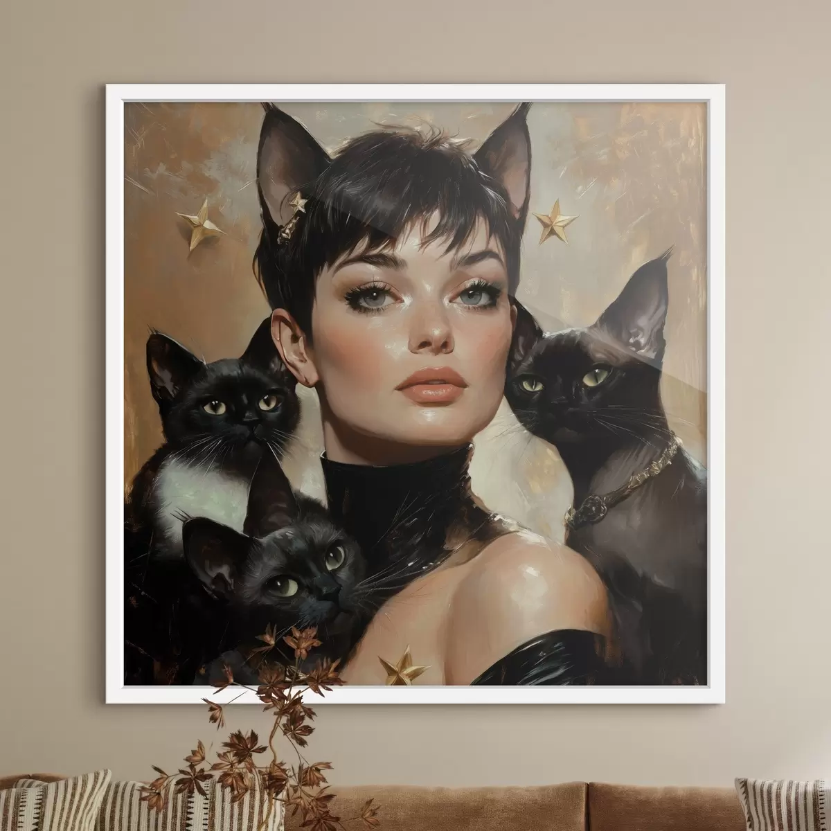 Plakat Kassitüdruk mustade kassidega f41344