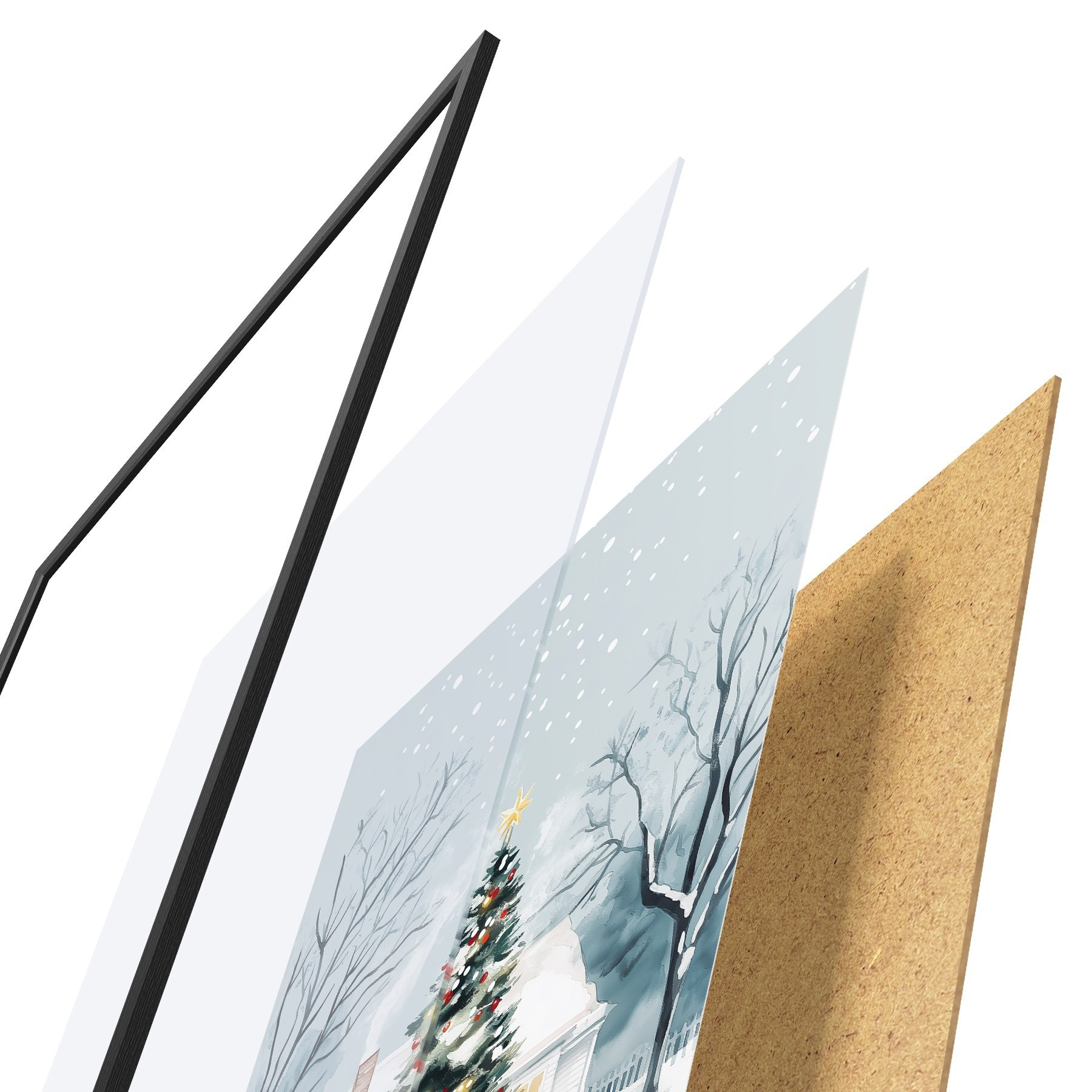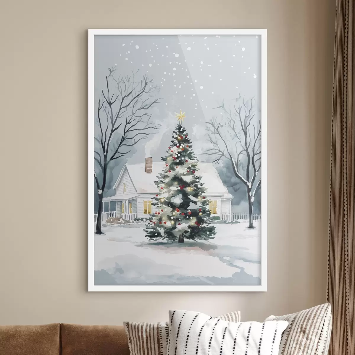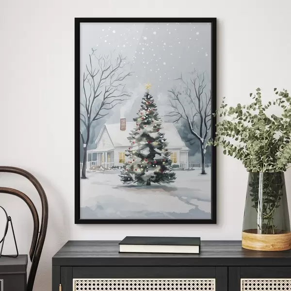 Poster Talvine linn, kaunistatud mänd, jõulud, akvarell Nr f41364