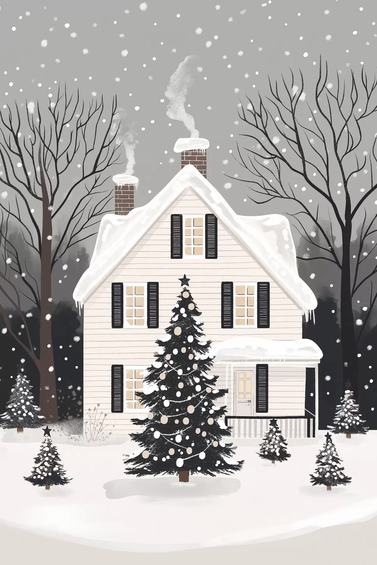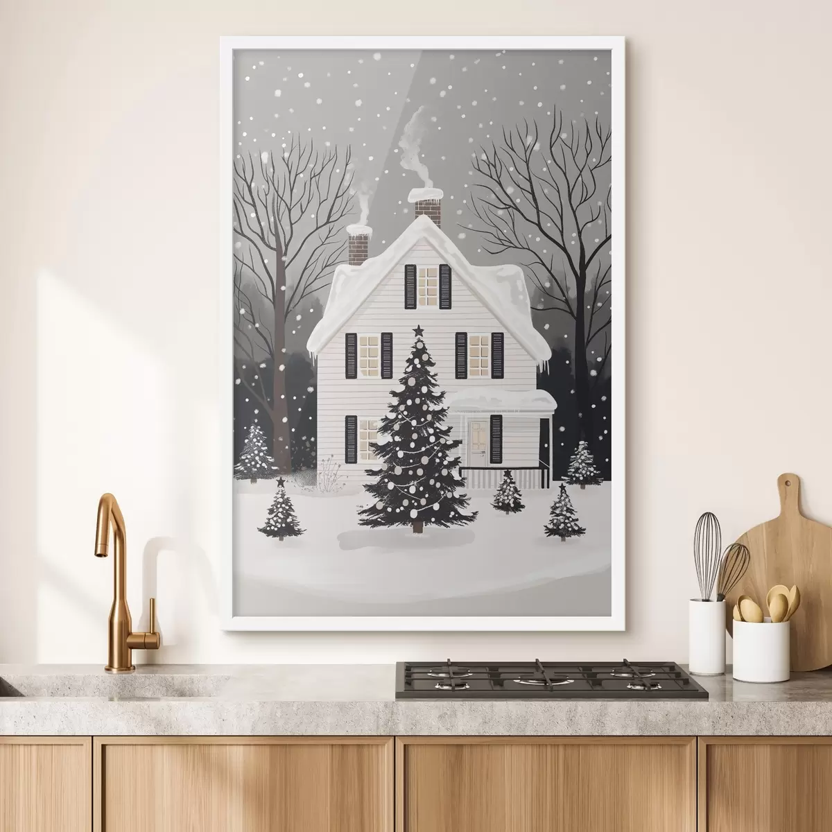 Poster Talvine linn, kaunistatud mänd, jõulud, mets, ilus maja Nr f41371