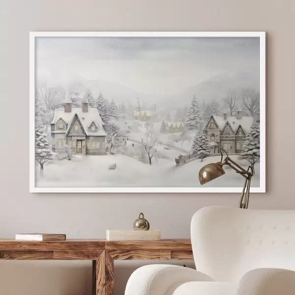 Poster Kaunis talvine maastik küla, mändide, majade, mägedega Nr f41384