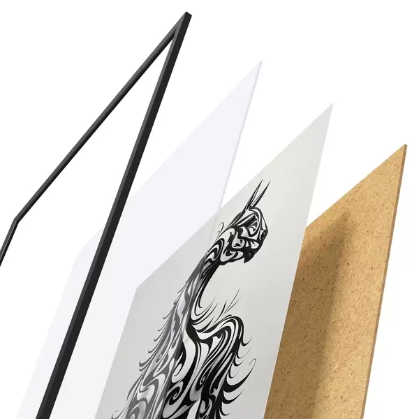 Plakat koosneb raamist, pleksiklaasist, trükitud pildist ja puitlaastplaadist alusplaadist. Tänu tagaküljel olevatele kinnitustele saab plakati kohe seinale riputada.