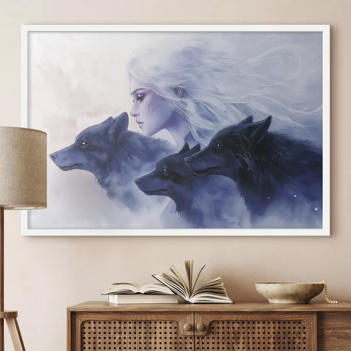Plakat Talv, naine koos huntidega, udu, salapärane f41460