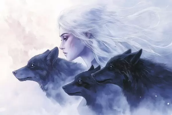 Plakat Talv, naine koos huntidega, udu, salapärane f41460