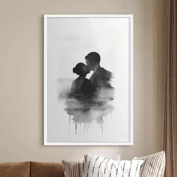 Poster Must-valge akvarellitehnikas siluett paarist Nr f41496