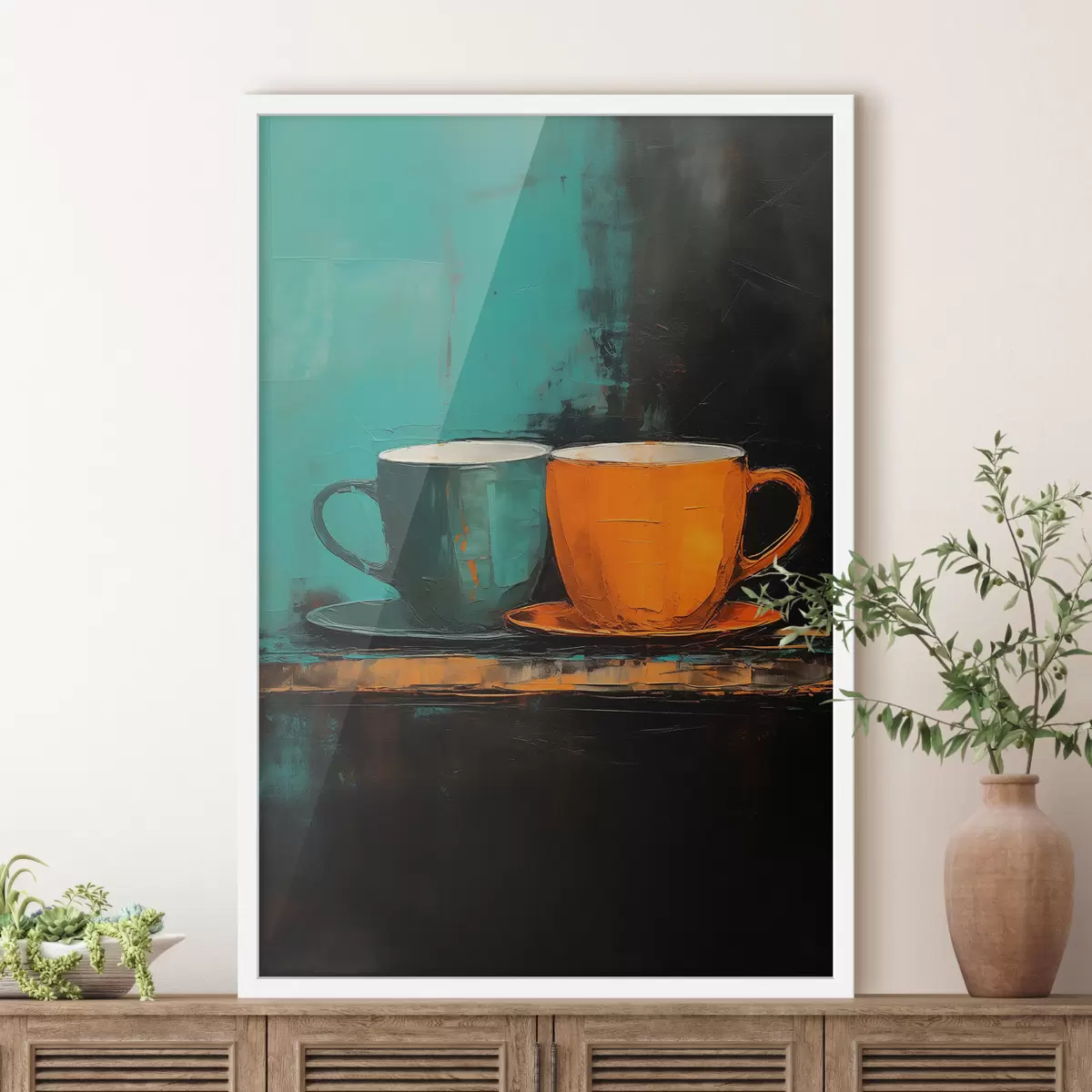 Plakat Või kaks tassi kohvi lauale f41542