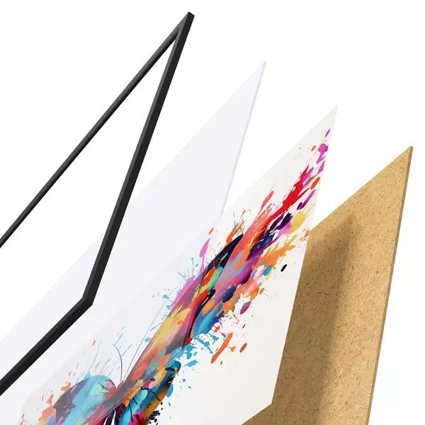 Plakat Akvarell liblikas mitmevärviliste värvipritsmete taustal f41560