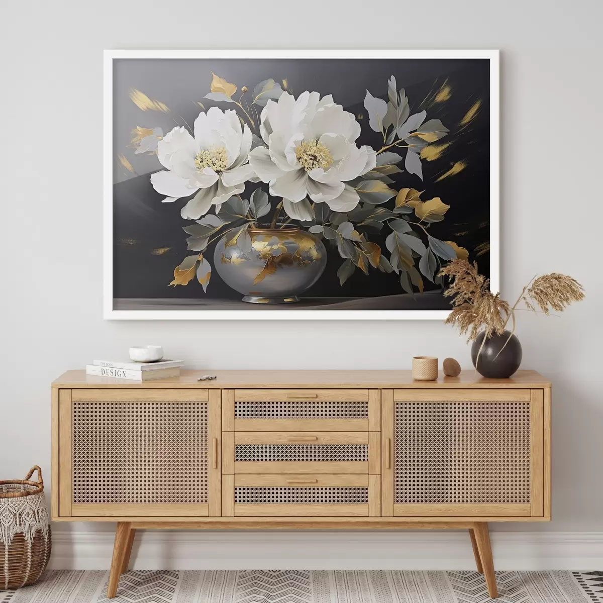 Poster Õrnad valged pojengid vaasis Nr f41568