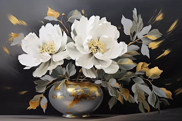 Poster Õrnad valged pojengid vaasis Nr f41568