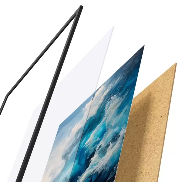 Plakat koosneb raamist, pleksiklaasist, trükitud pildist ja puitlaastplaadist alusplaadist. Tänu tagaküljel olevatele kinnitustele saab plakati kohe seinale riputada.