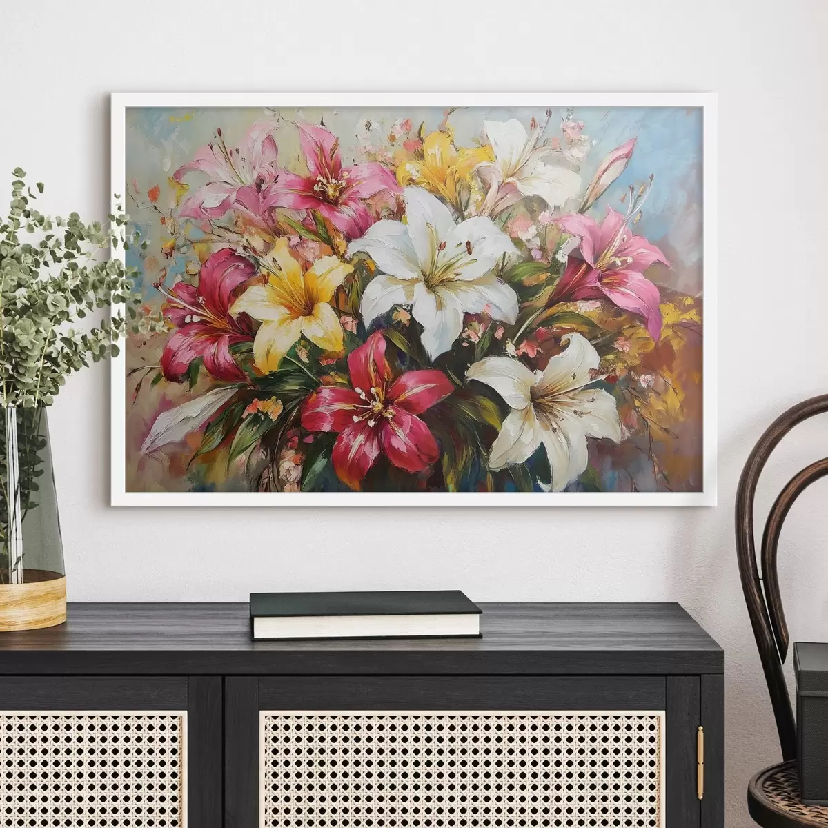 Me müüme pilte kanderaamidel - see on puidust raam, millele lõuend on pingutatud. Seda pilti ei ole vaja raamida, seda võib riputada otse seinale.